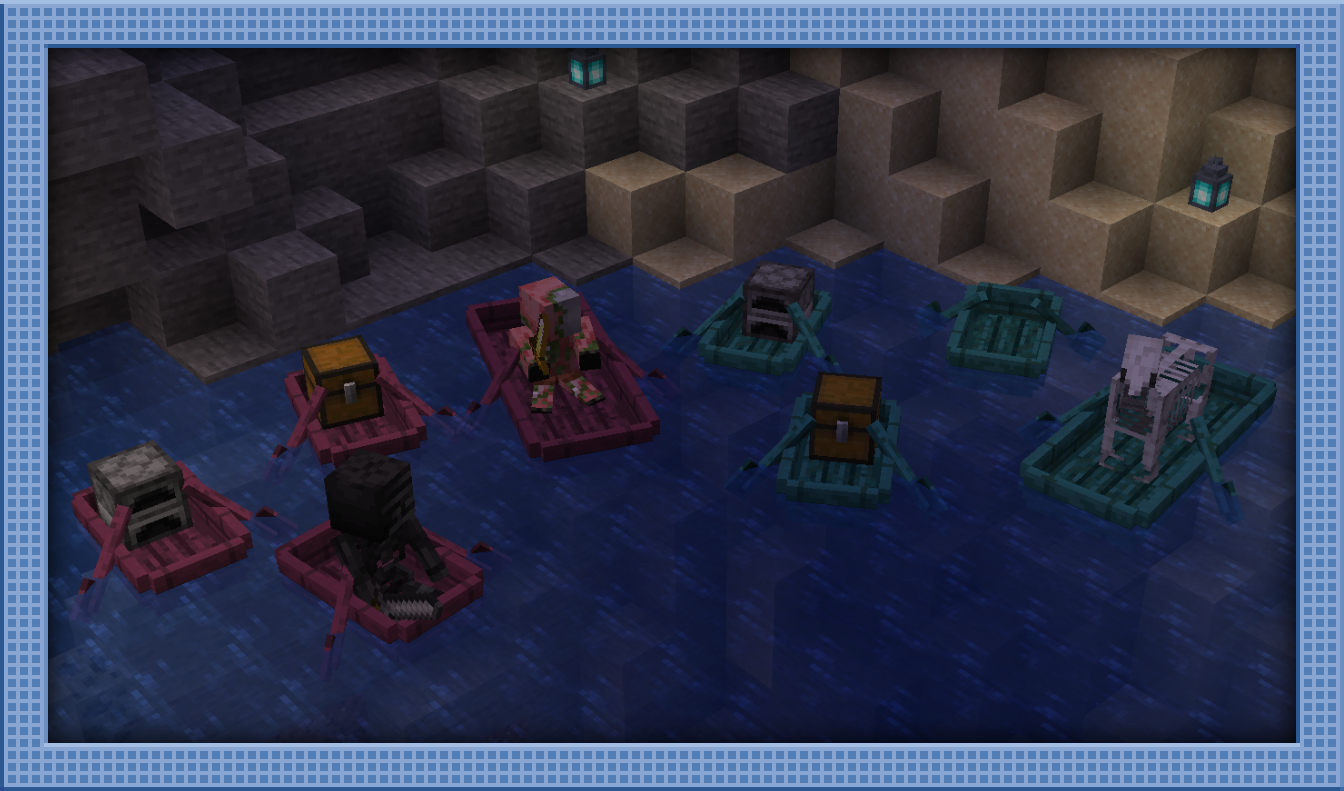 This update introduces Crimson and Warped boats, new boat types craftable out of their respective planks. Just like all other wood types, they can be crafted into chest, furnace, and large boats! The goal with this feature is to allow players to use more colorful boats in the Overworld.