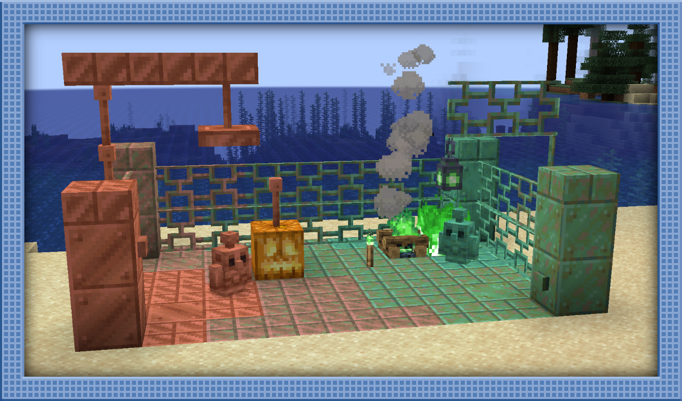 Copper also introduces Cupric Fire, a new fire type like Soul and Ender. Cupric fire is green and can be made into torches, lanterns, campfires, and braziers!