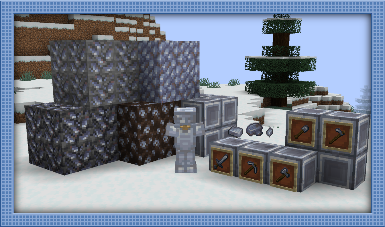 Silver is an entire new ore tier, acting as an alternate to gold in most cases. Silver Ore is more common in cold biomes, while Gold Ore is more common in warm biomes, but both can now be found in all biomes. Silver can also be found abundantly in Ice Spikes biomes, and underneath the surface of Soul Sand Valleys.