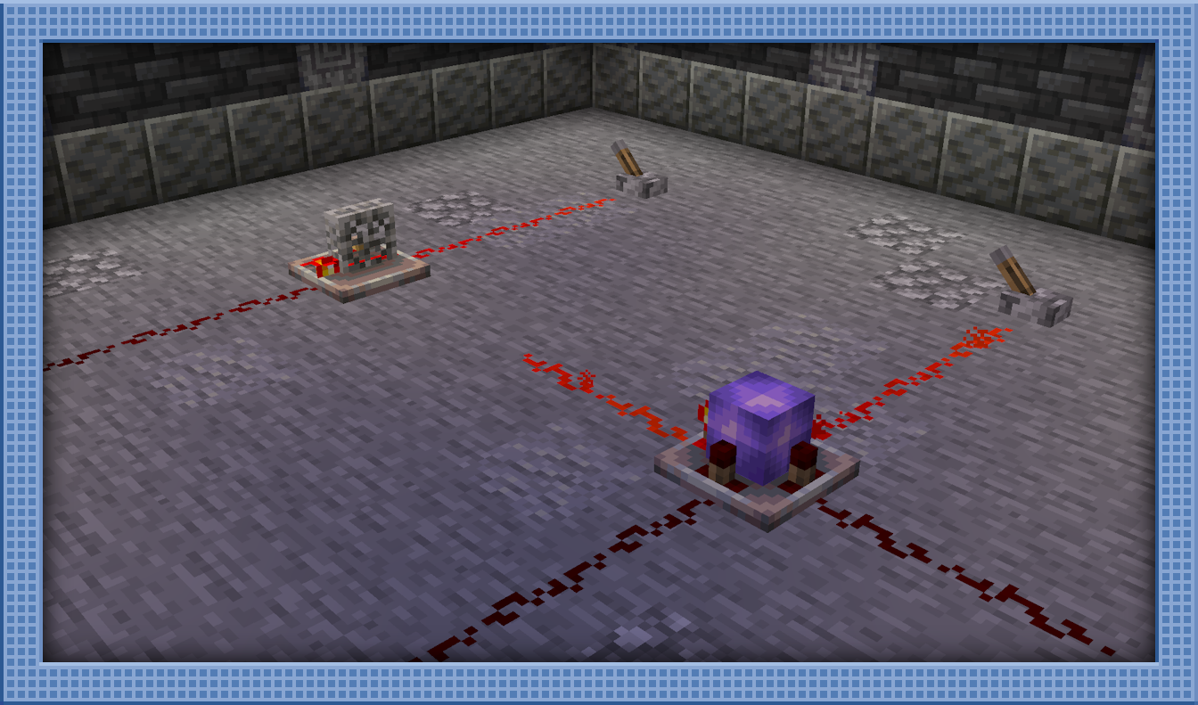 The Redstone Refractor is a component crafted with Tin Ingots, Redstone Torches and a block of Amethyst. When powered by Redstone, it redirects the received signal randomly to one of its three outputs. The weight of each output can be modified by moving the corresponding torch. The weights range between 0-3, with a higher weight meaning that the signal has a higher change of exiting through that output. If the weight is set to 0, the Refractor will never choose that output.