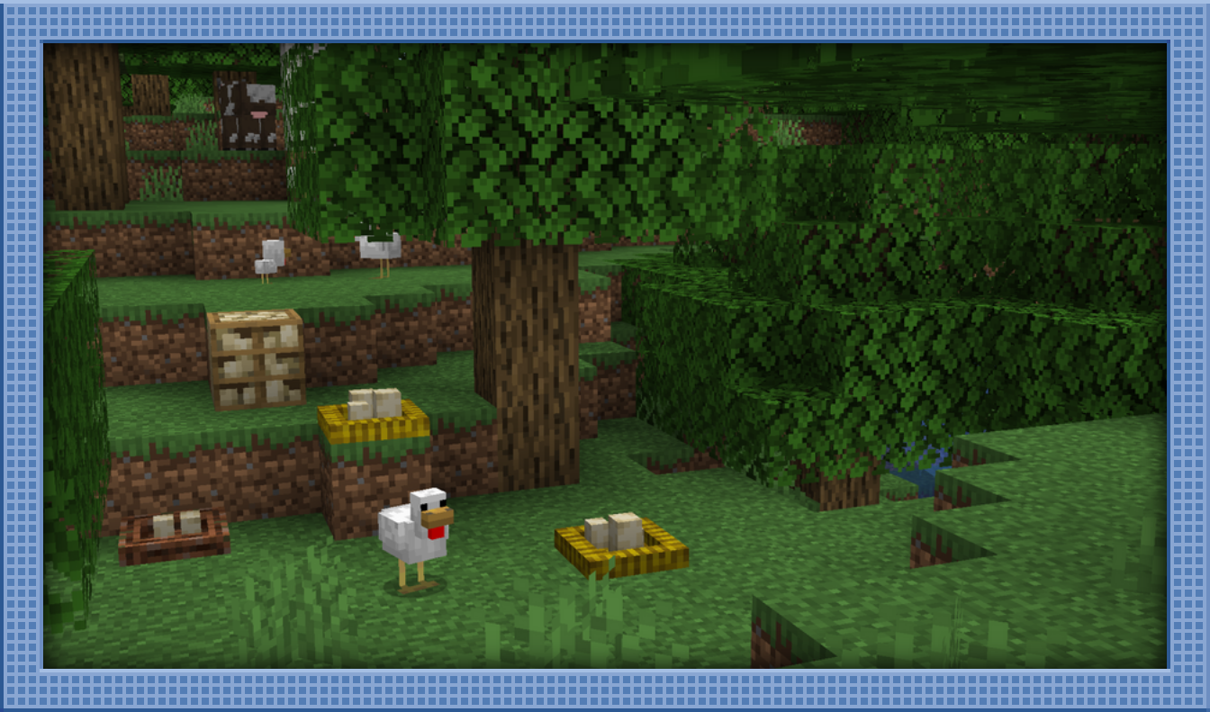 Alongside the Scrambled Eggs, Fried Eggs, Egg Crates, Hay & Twig Nests, some new features have been introduced. Birds associated with their nests will now spawn alongside their nests when generated in the world, to make them feel less empty. Chicken Coops can also now be found in villages for a bit of decoration and introduction to the concept of nests.