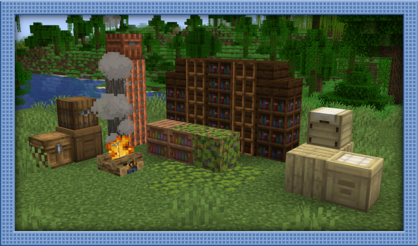 Behold, Woodworks! Woodworks is a brand new mod showcasing our take on various wood variant blocks, including Chests, Ladders, Beehives, Bookshelves, and more. The goal is to be a bit more self-dependent and provide options to the player.
