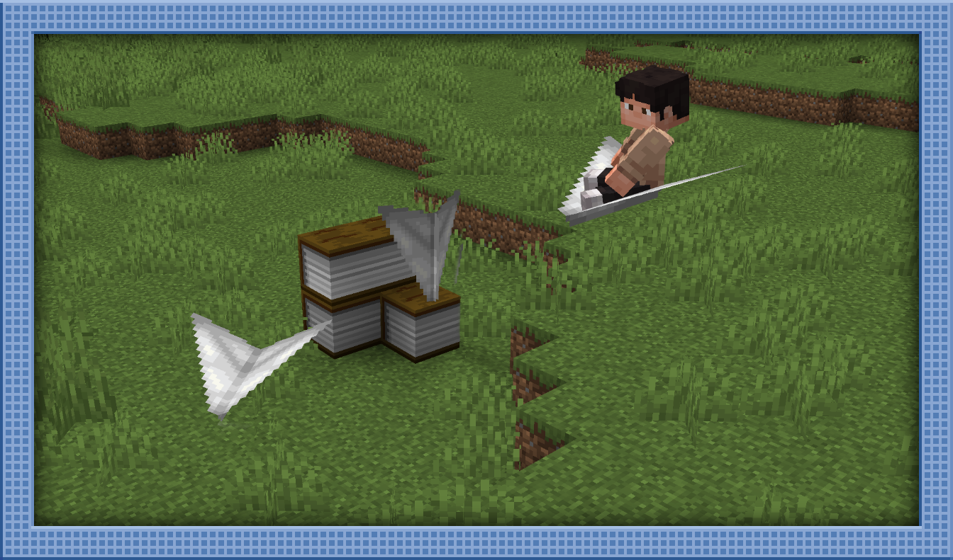 **Paperworks **is a quite small, but in another sense, rather large mod. In this mod, we add Bloocks - giant blocks of Books! They serve no purpose! We also add Paper Airplanes, new vehicles that can be used to glide at slow speeds for a couple seconds into they spin into a random direction, crashing and killing the player.